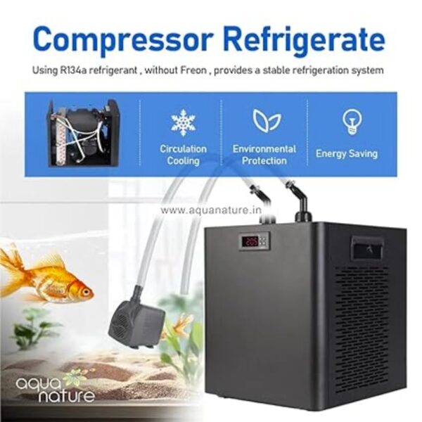 The AquaNature Arctic Aquarium Chiller ACC 1000 is a powerful, professional-grade cooling system suitable for aquariums up to 1000 litres, making it ideal for large home aquariums, reef tanks, and commercial aquatic setups.