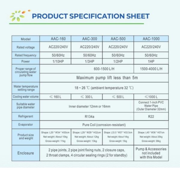 - The ACC 160 provides stable and controlled cooling, ensuring a healthy aquatic environment.
