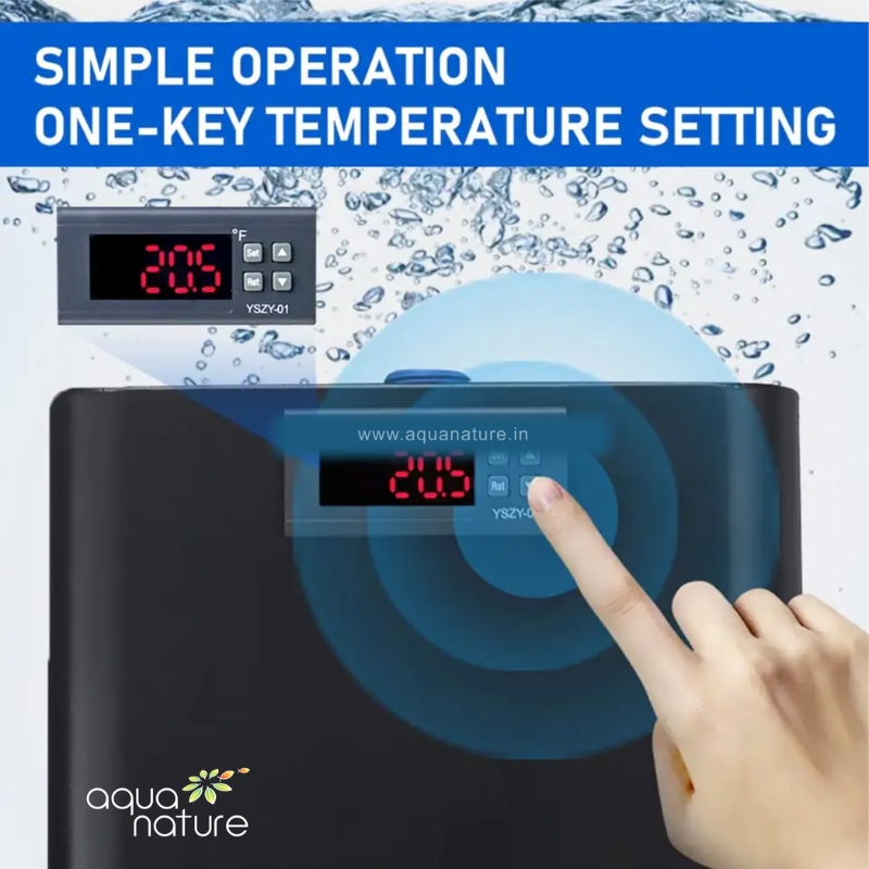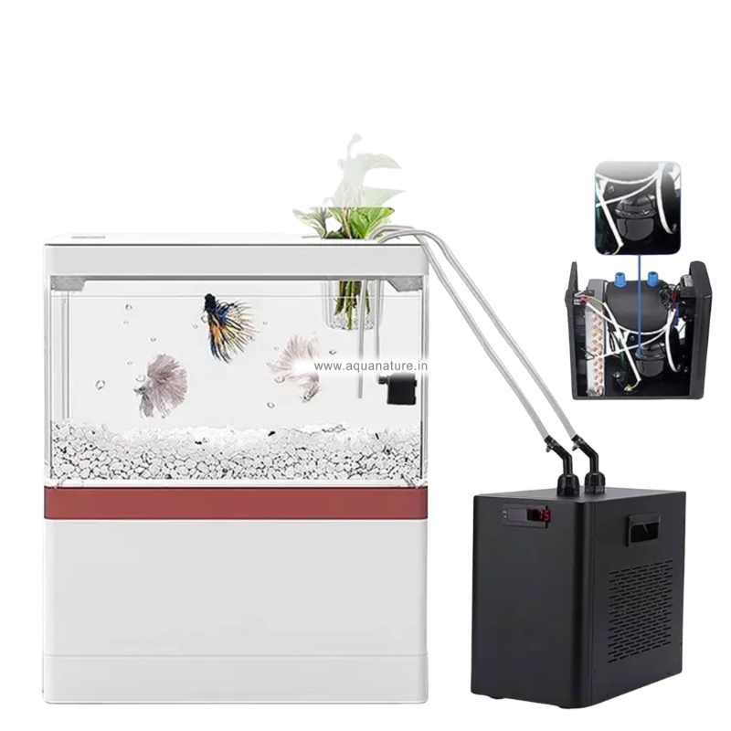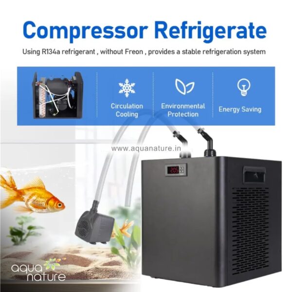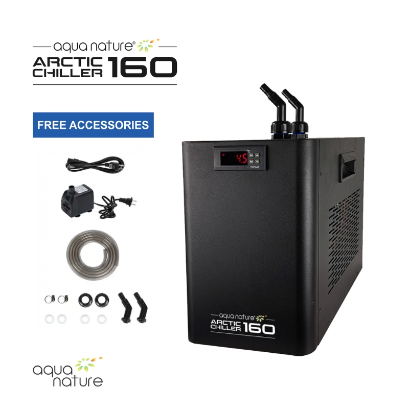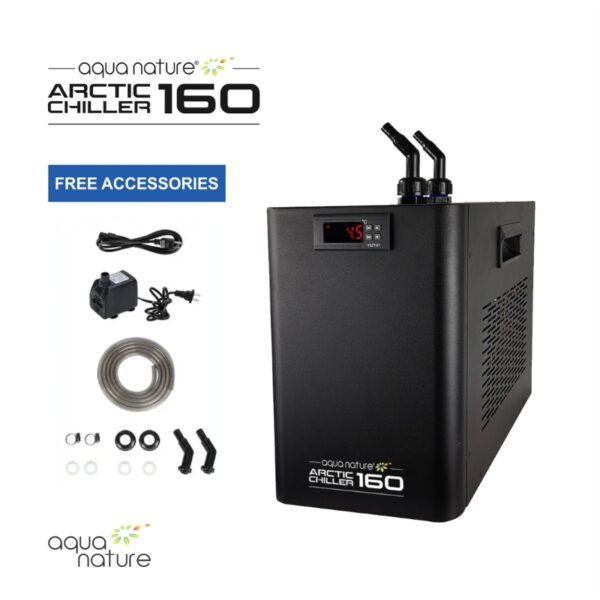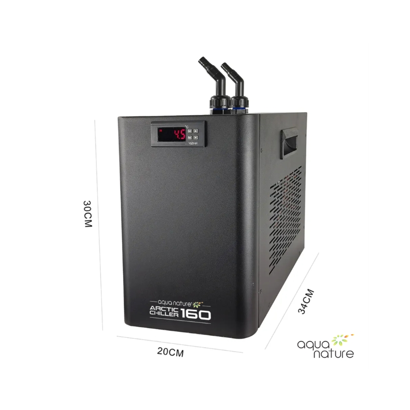The AquaNature Arctic Aquarium Chiller ACC 160 is a compact, energy-efficient cooling solution suitable for aquariums up to 160 litres, making it ideal for small tanks, nano reefs, and beginner setups.