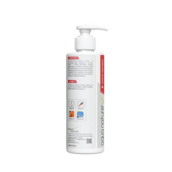 Aquanature Garlic Cure is a concentrated garlic supplement enriched with Vitamin C, a powerful antioxidant that helps boost immunity and increase appetite in fish. Garlic contains a compound called allicin, which has natural antiparasitic properties.