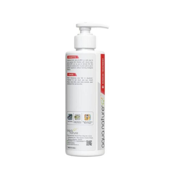 Use in aquarium keeping when introducing new fish into the aquarium. It is effective for the treatment of eye cloud, pop eye, mouth fungus, body slime, open body wounds, open red sores, fin rot, and tail rot in fish.
