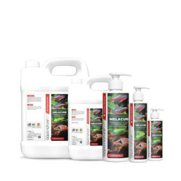 MELACURE provides a safe and natural way to cure bacterial infections in fish. It can be used on delicate fish such as tetras and scaleless fish. It is also safe for use in planted aquariums and does not harm biological filtration.