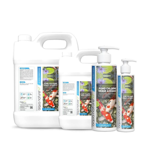 Aquanature Pond Chlorine Erase Advance is a concentrated, advanced, premium quality water conditioner enriched with vitamins and Aloe Vera. The added vitamins help improve fish health and strengthen the immune system, assisting in the fight against disease.