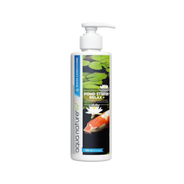 Aquanature Pond Stress Relax + is a technologically advanced, premium-quality, maximum-strength water conditioner designed to make tap water immediately safe for both freshwater and marine aquariums. This advanced formula is enriched with Aloe Vera, which helps enhance the natural slime coat of fish and significantly reduces stress, ensuring healthier and more active aquatic life.