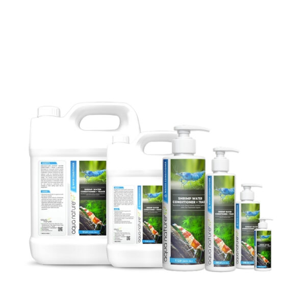 Aquanature Shrimp Water Conditioner + Trace is specifically formulated for freshwater shrimp such as the genus Caridina and Neocaridina, as well as other crustaceans. It instantly conditions tap water by neutralizing harmful chlorine, chloramines, ammonia, and heavy metals, making the water safe for shrimp and crayfish.