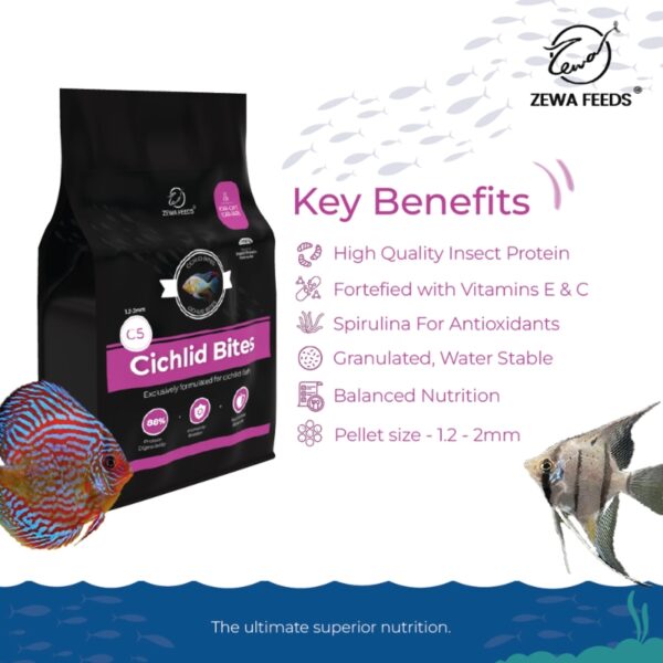 Fuel your Cichlids with Zewa Feeds Cichlid Bites — a power-packed premium feed crafted with insect protein, fish meal, shrimp meal, and spirulina to deliver vibrant color, muscle growth, and improved immunity.