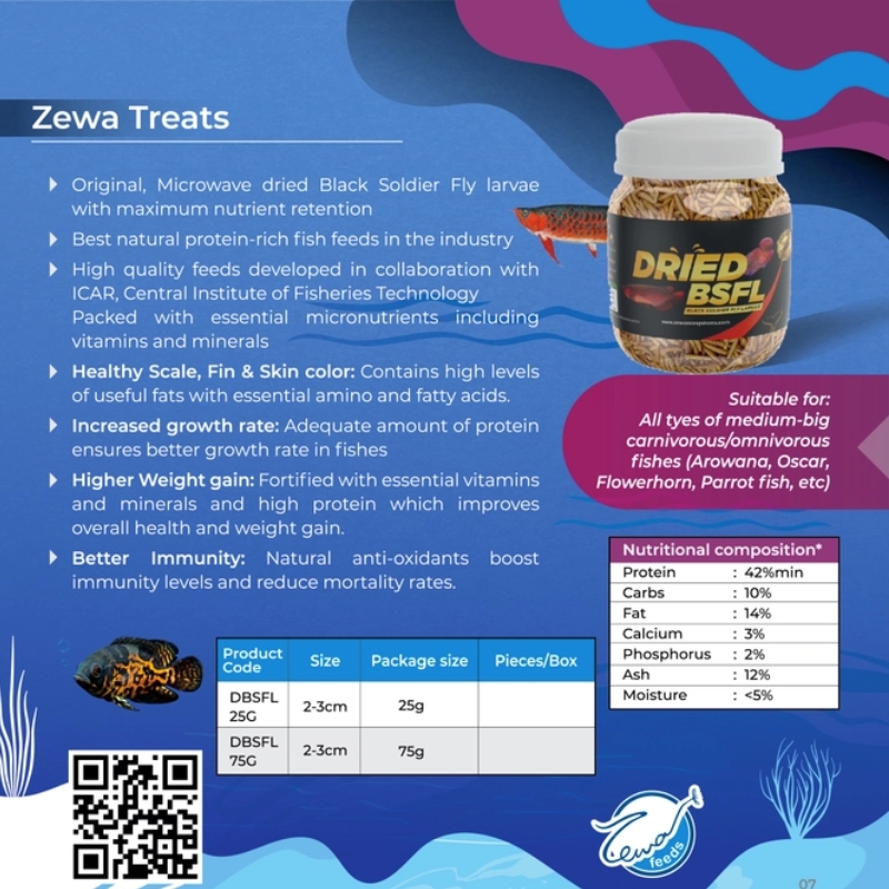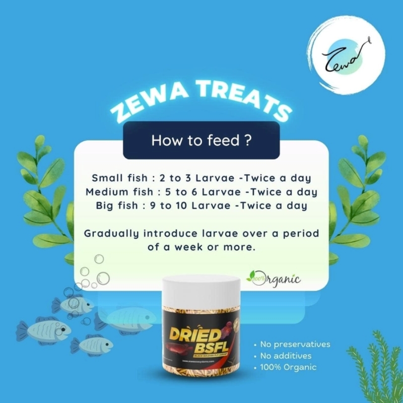 Give your aquarium the power of natural nutrition with Zewa Dried Black Soldier Fly Larvae (BSF Larvae) — a 100% natural, chemical-free superfood for ornamental fish, reptiles, and birds.